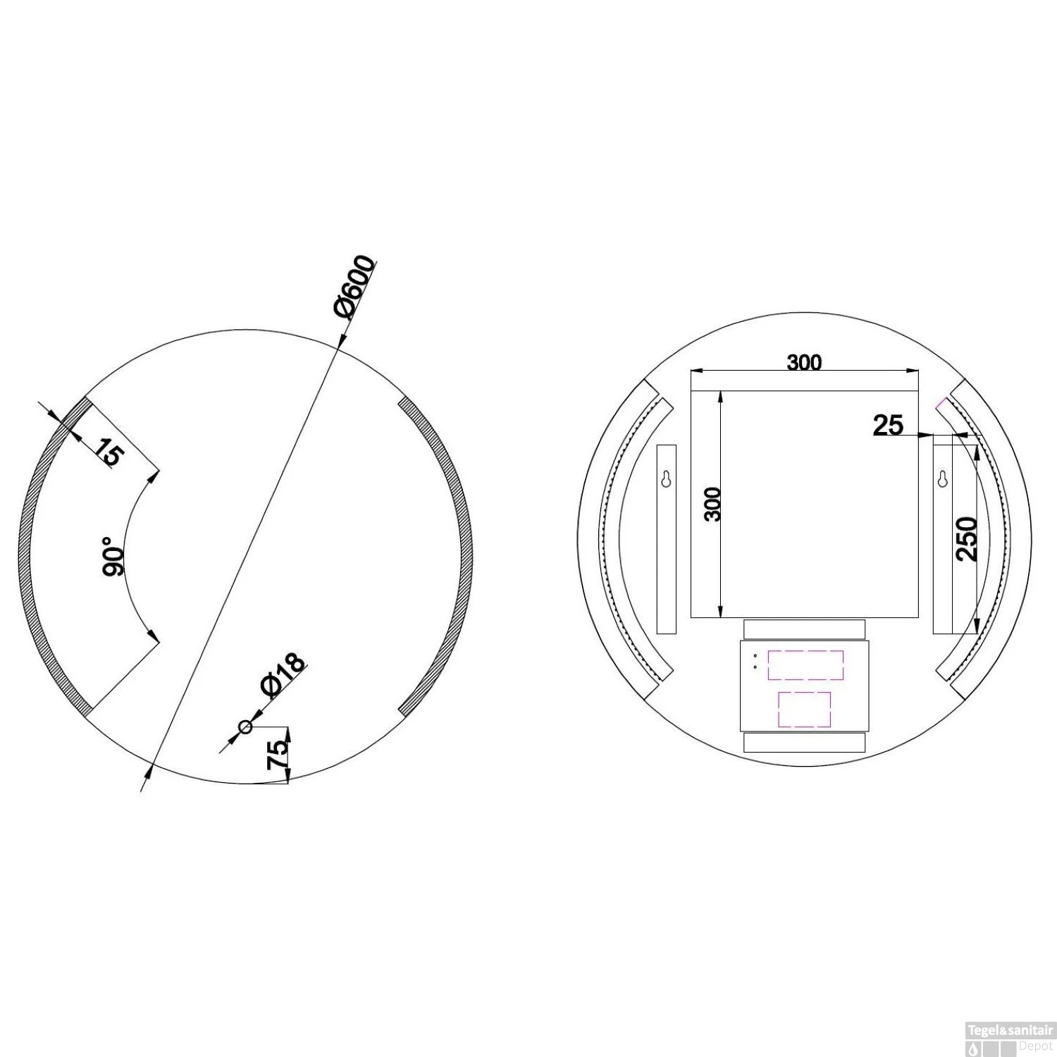 Specificaties Badkamerspiegel Boss & Wessing Circle LED Verlichting Condensvrij 60 cm: