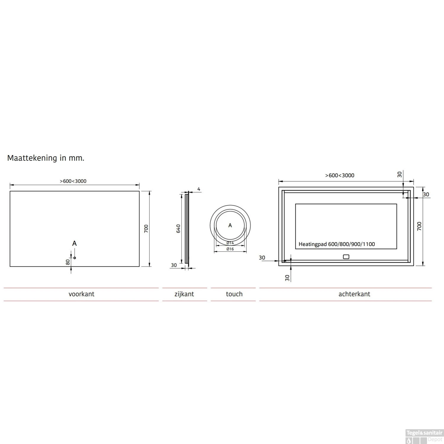 De rechthoekige badkamerspiegel heeft ook een verwarmingselement. Door de spiegelverwarming die achterop de spiegel is geplaatst zal er ter plaatse van het verwarmingselement geen condens meer ontstaan.