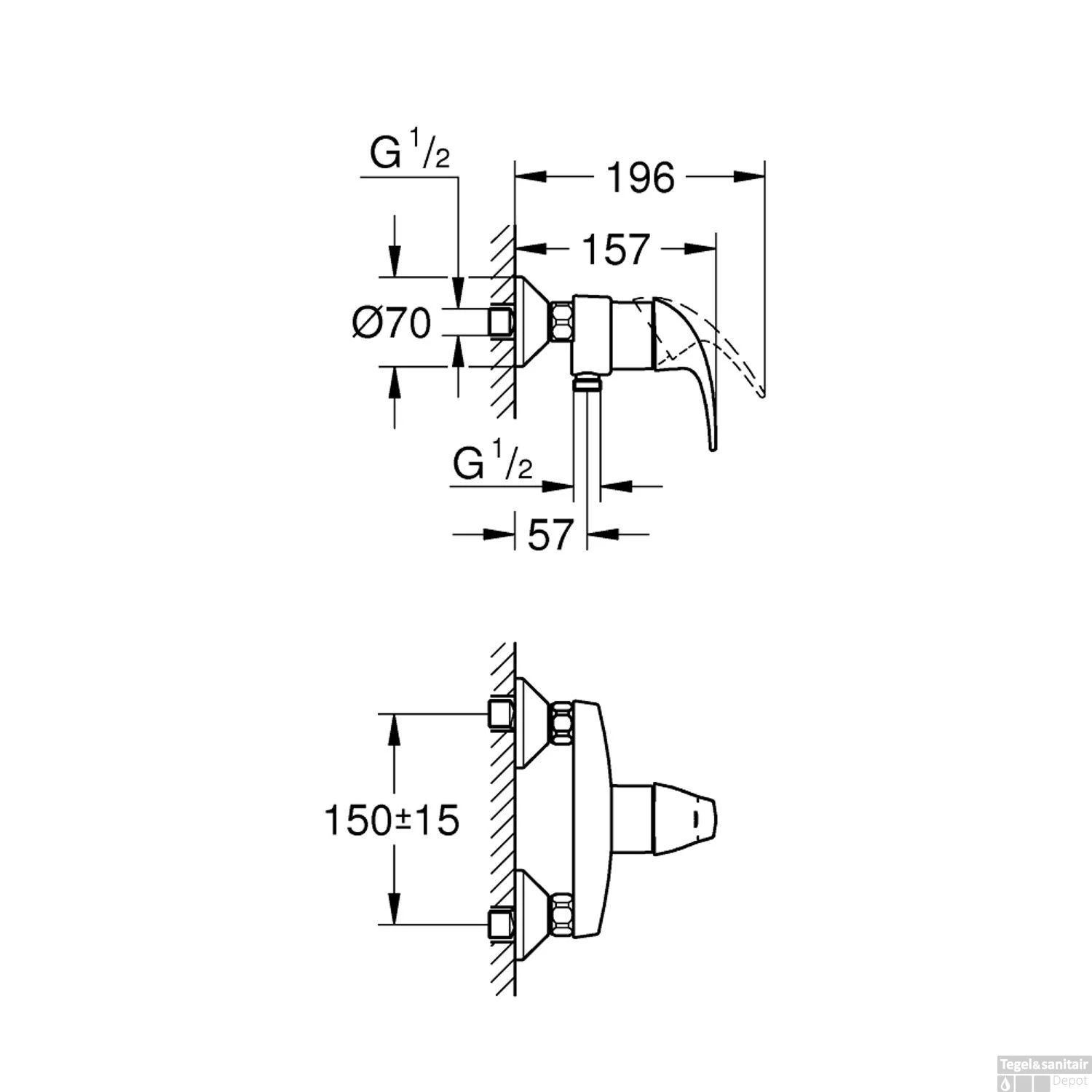 - Draadaansluiting aanvoer: 1/2″