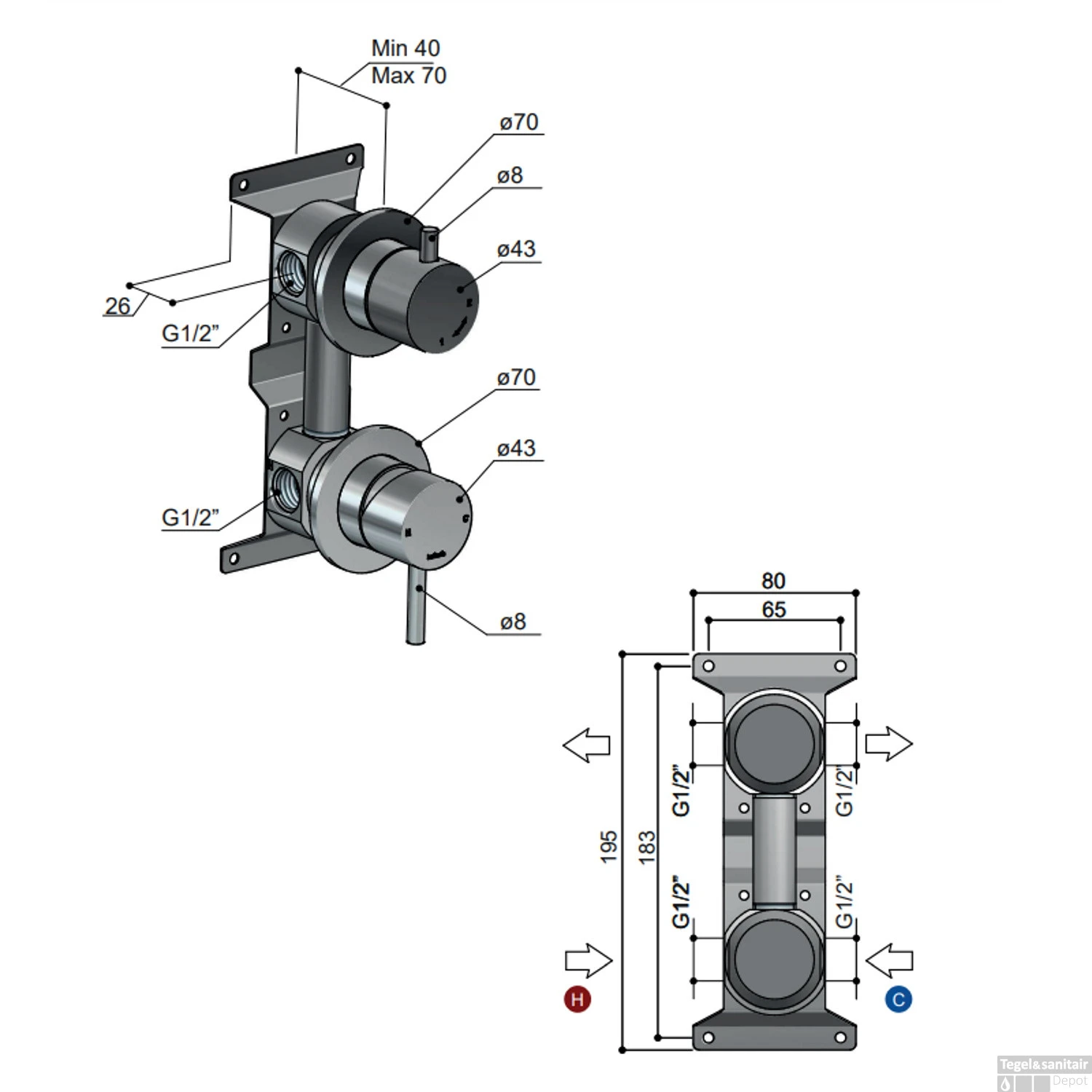 Douchekraan Inbouw Hotbath Archie Mengkraan 2-weg Omstel RVS316