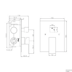 Douchekraan Inbouw Hotbath Archie Mengkraan 2-weg Omstel RVS316