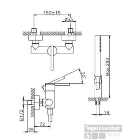 Opbouw Douchekraan GRB Aura Mengkraan Messing Zwart En Chroom