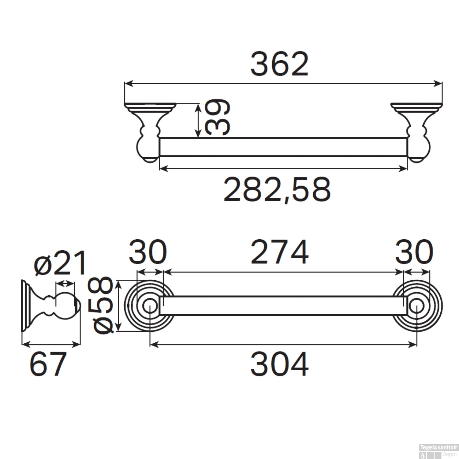 De hoogte van deze handdoekhouder is 5,8 cm, de breedte is 36,2 cm en de diepte is 6,7 cm. Het uiteindelijke gewicht van deze handdoekhouder is 337 gram. De handdoekhouder is gemaakt van geborsteld roestvrij staal, en dat alles in een RVS look kleur.