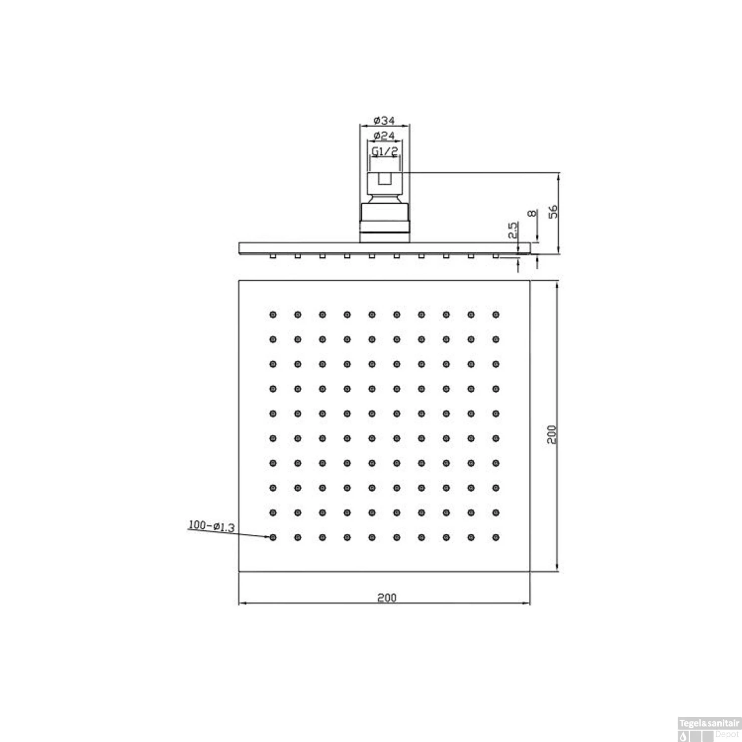 Specificaties Hoofddouche Vierkant Wiesbaden 20×20 cm Zwart: