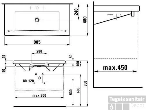 Meubelwastafel 98×48 cm. z/kraangaten lcc