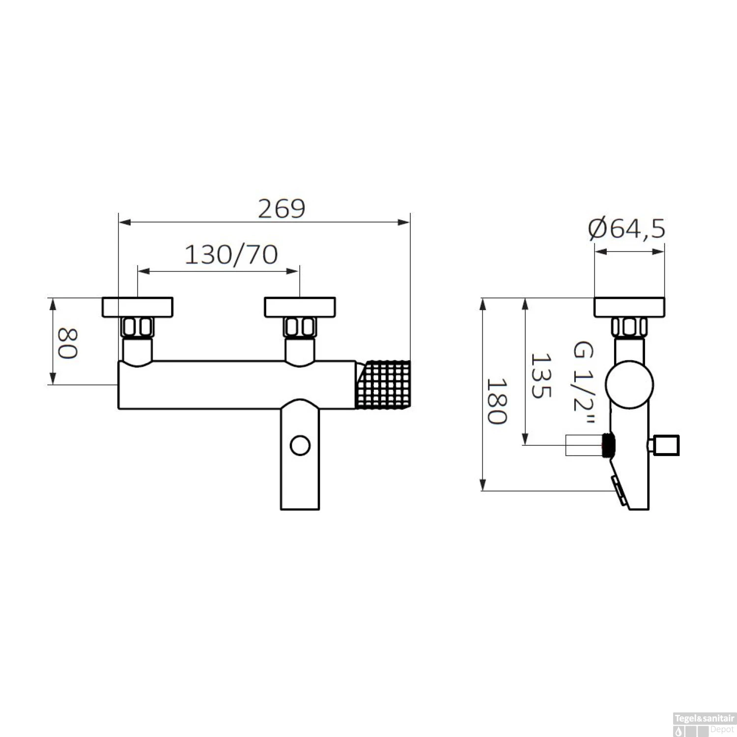 Specificaties Opbouw Badkraan GRB Aura Mengkraan Knop aan Rechterzijde Chroom:
