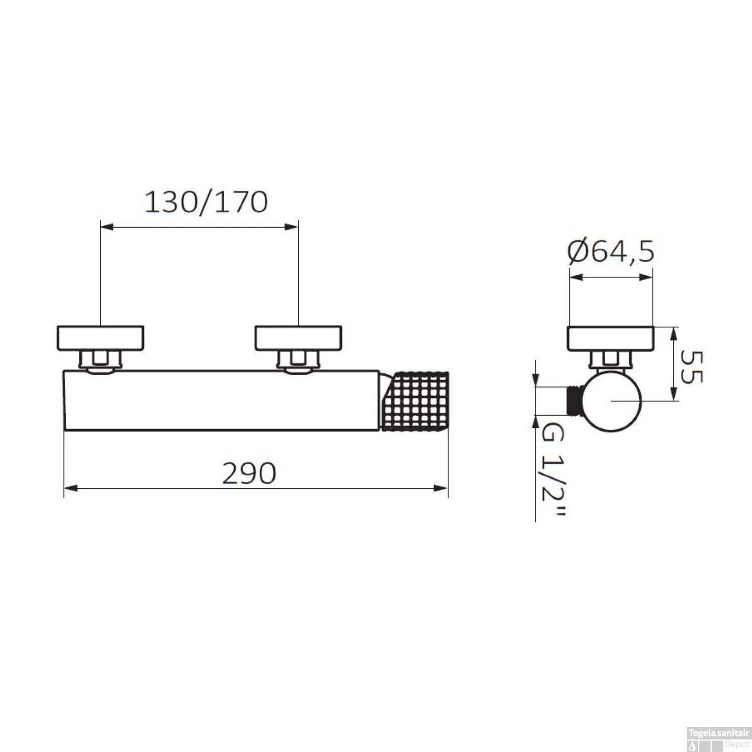 Specificaties Opbouw Douchekraan GRB Aura Mengkraan Messing Zwart en Chroom: