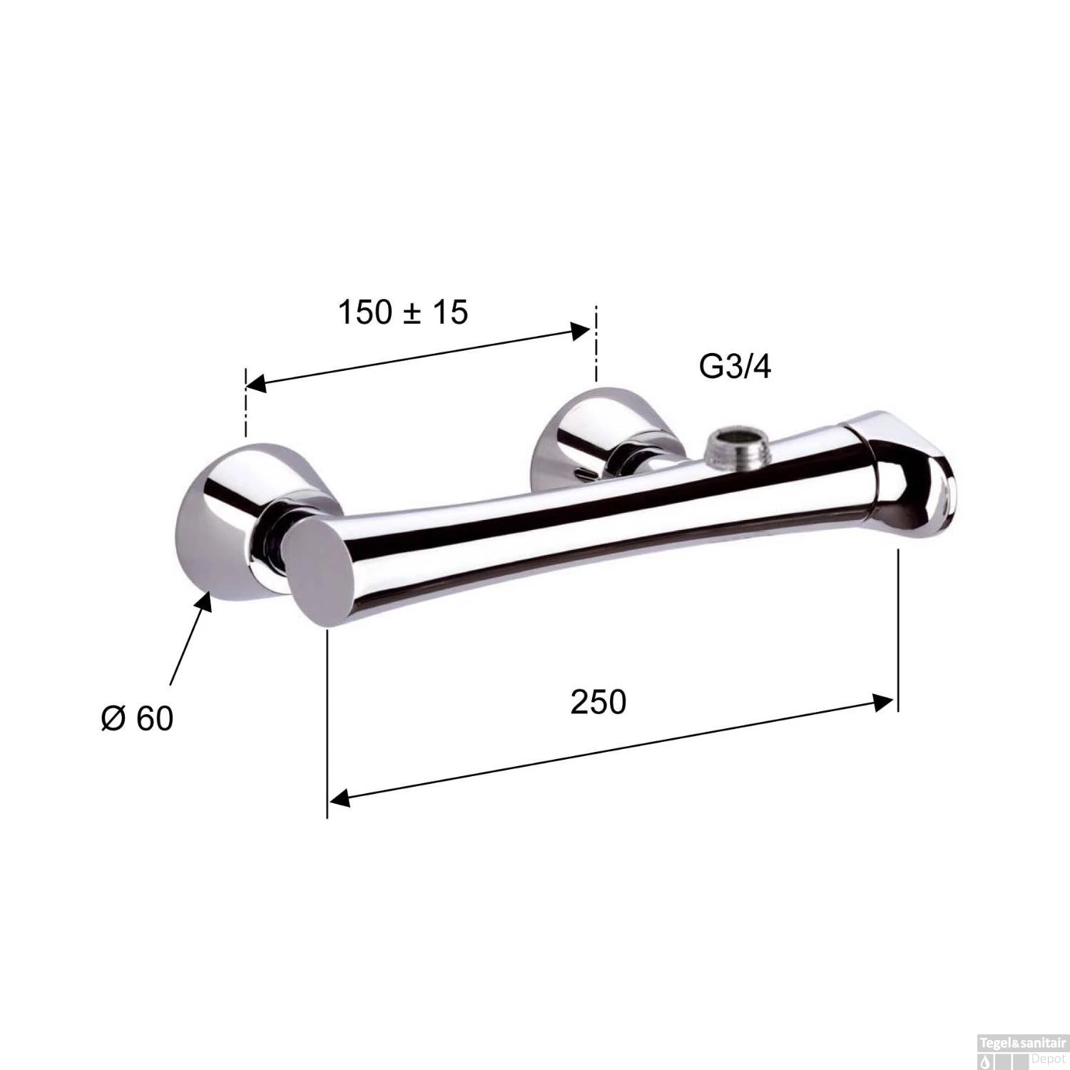 Specificaties Opbouw Douchekraan Mengkraan 1-hendel Rechts Chroom Sapho Axamite: