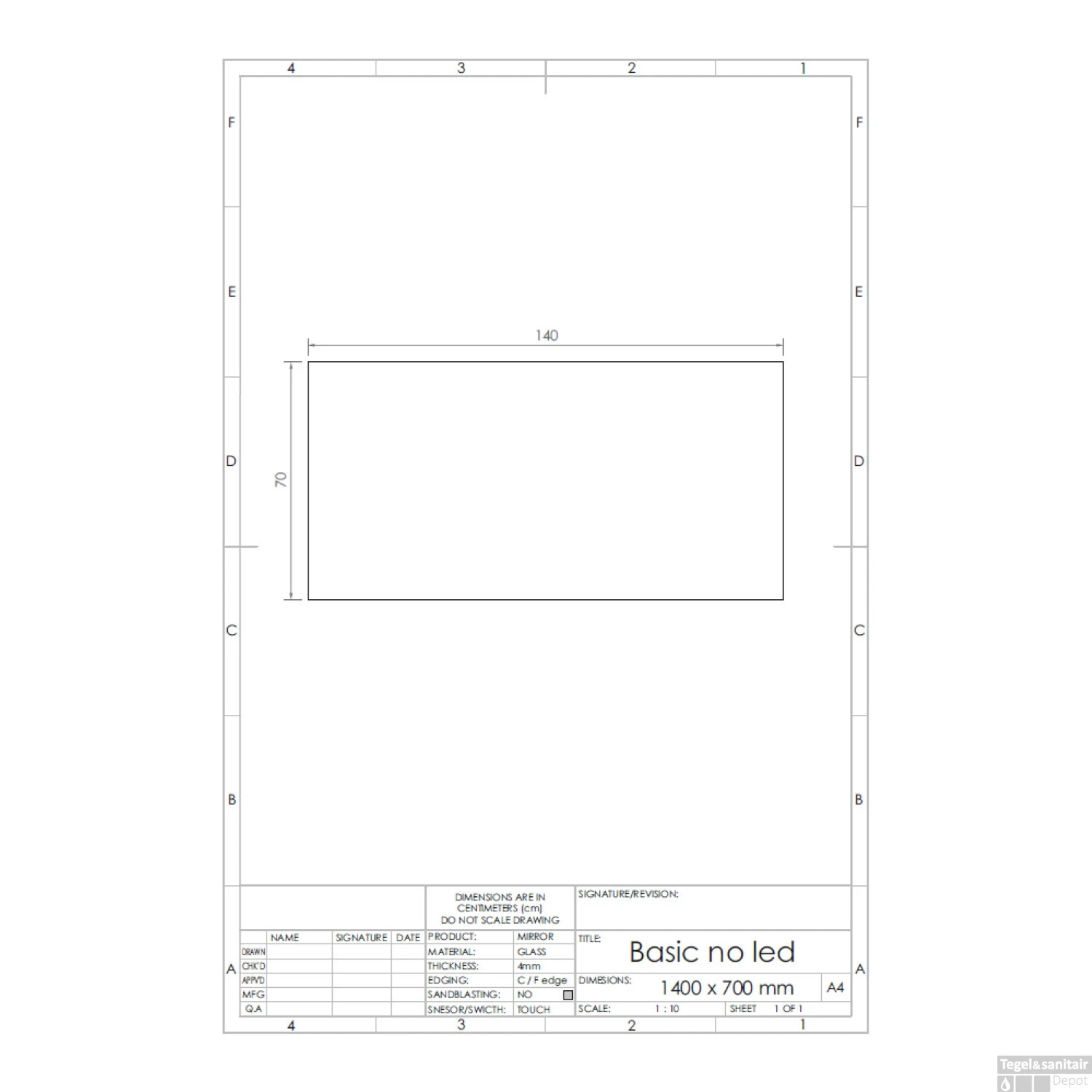 Specificaties Spiegel Gliss Design Basic Zonder Verlichting 140cm: