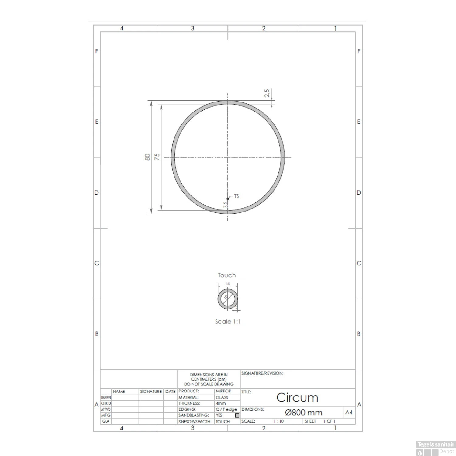 Specificaties Spiegel Gliss Design Circum Framework Rond LED Verlichting 80cm: