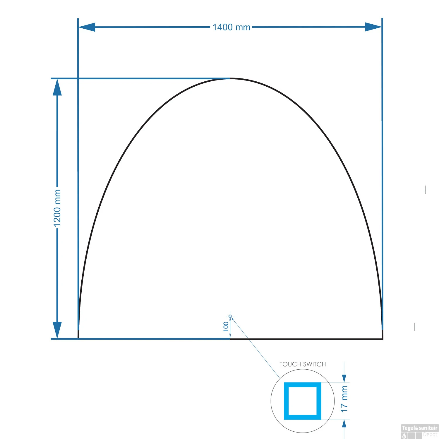 Specificaties Spiegel Gliss Design Eos 140x120cm Met Ronding Naar Boven:
