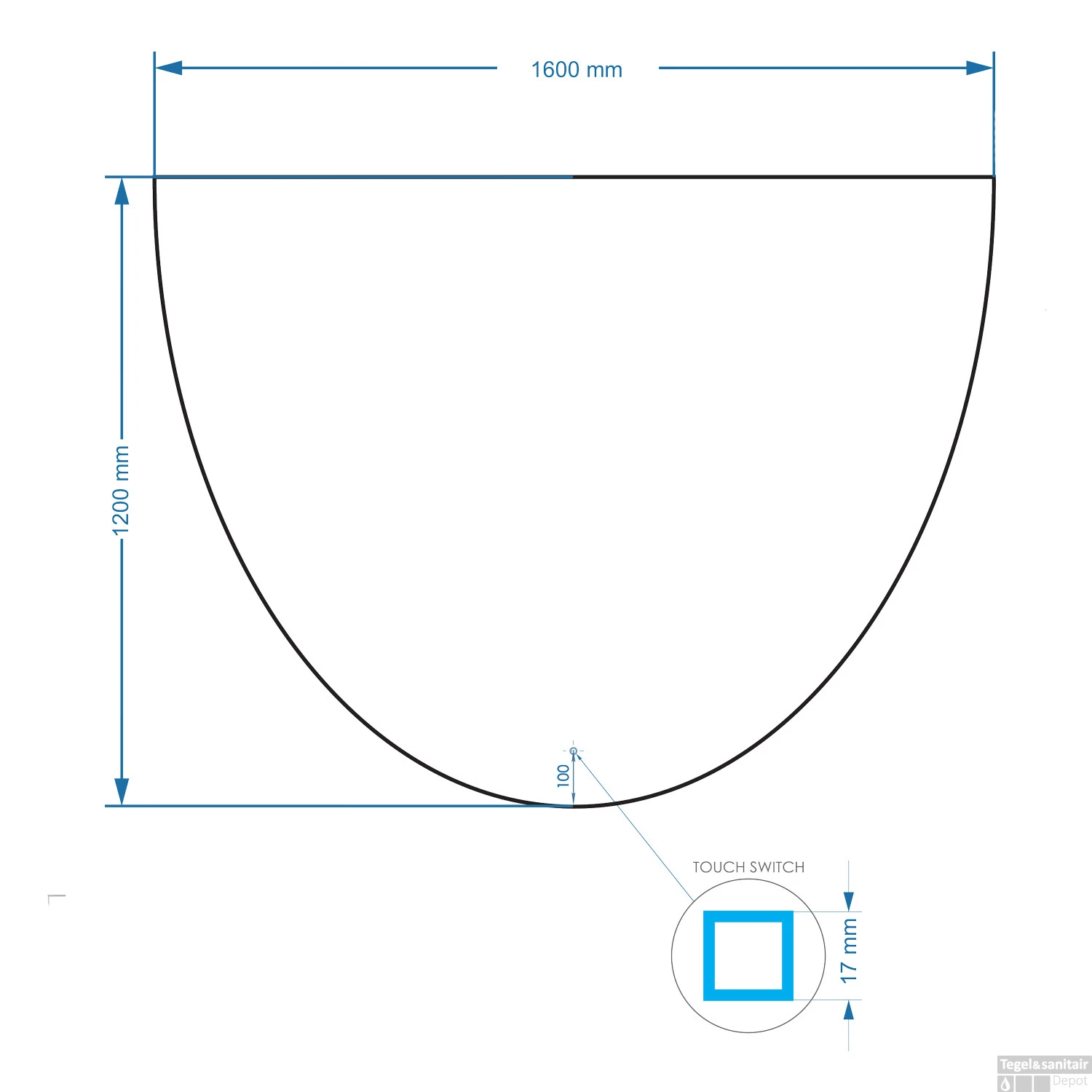 Specificaties Spiegel Gliss Design Eos 160x120cm Met Ronding Naar Beneden: