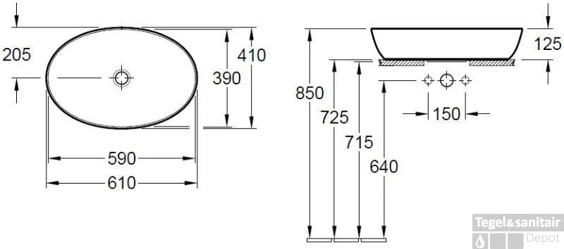 Opzetwastafel ovaal 61x41cm.z/kraangat z/overloop