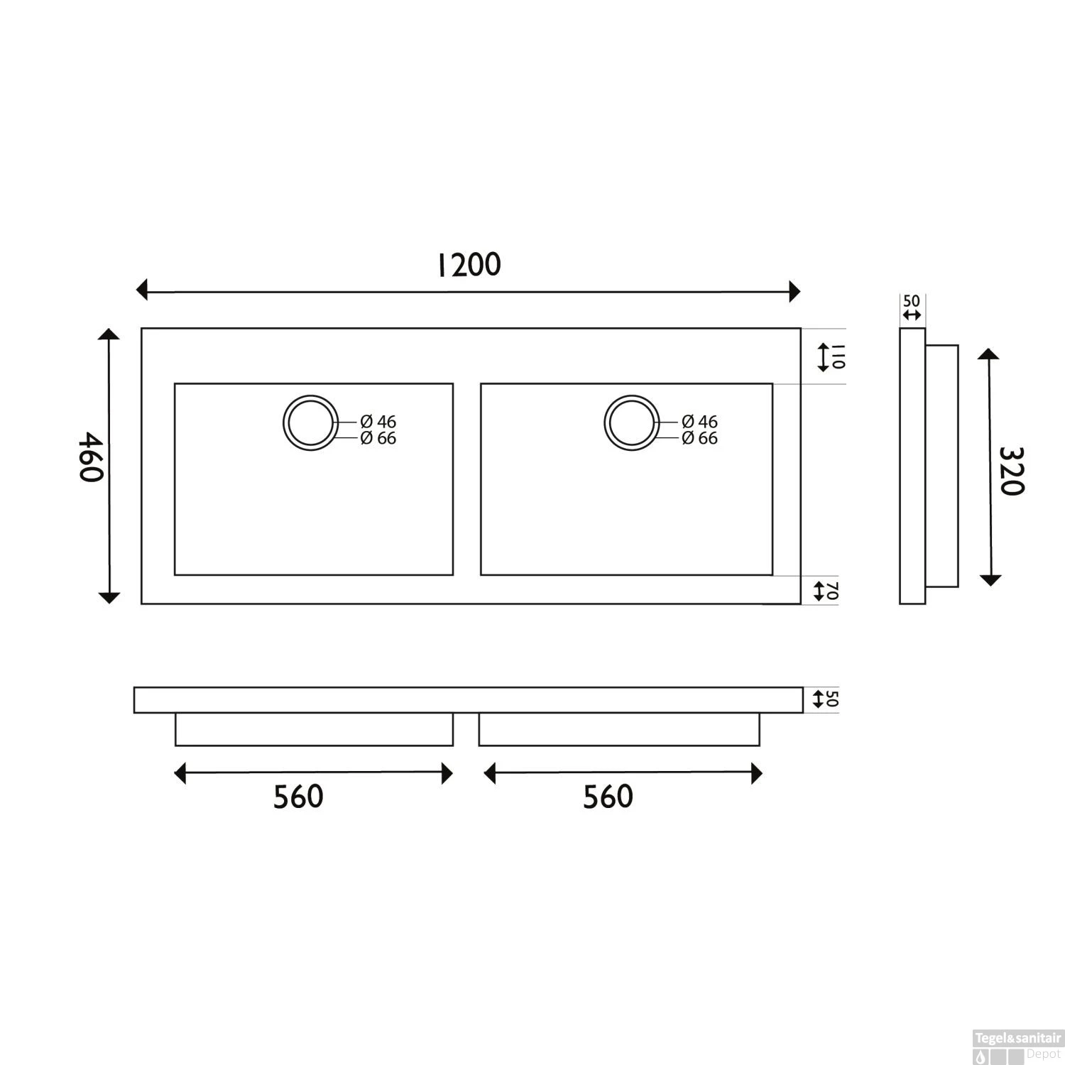Wastafel Hardsteen Wiesbaden Dubbel 120x46x5 cm (2 kraangaten)