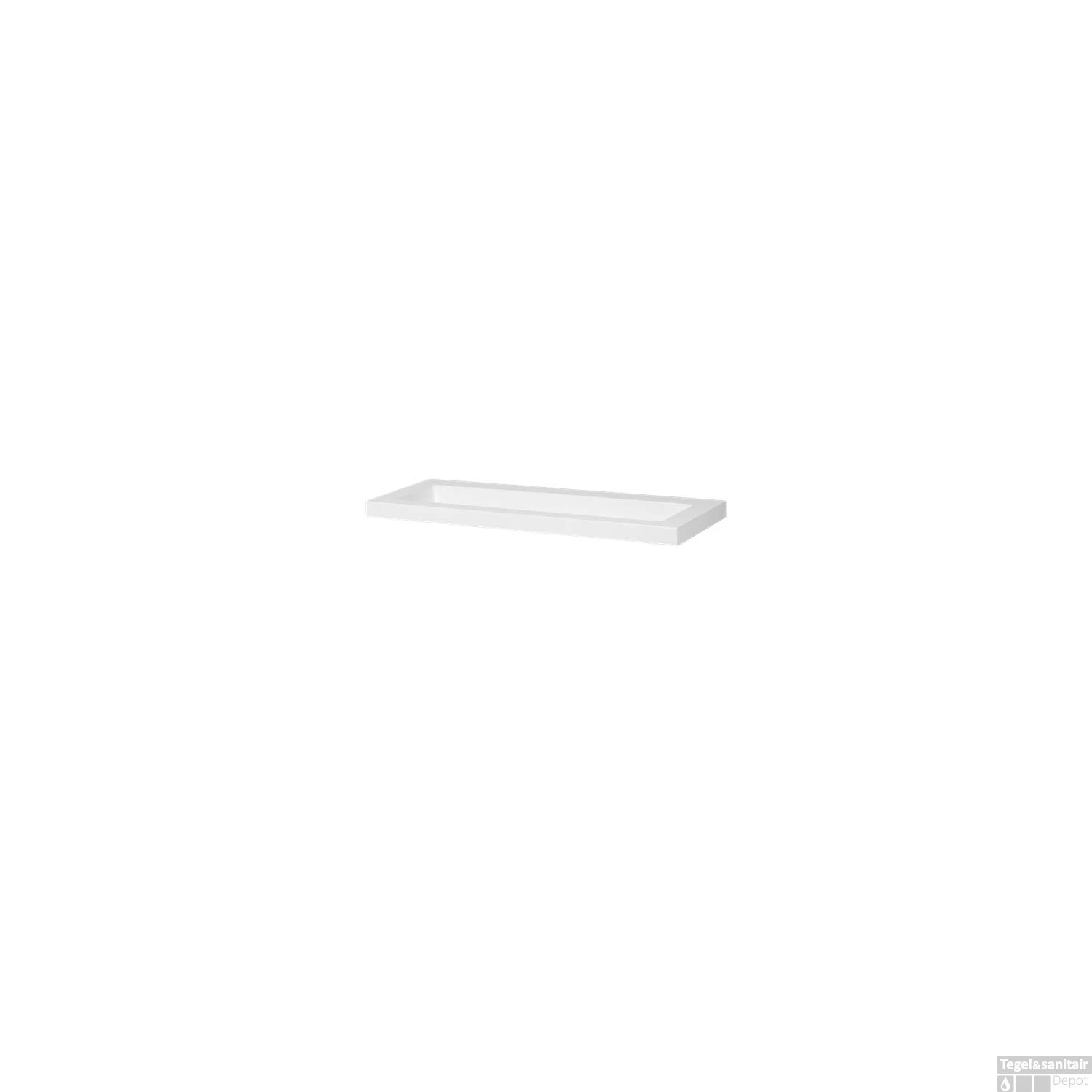 Het XXS wastafelblad is uitgevoerd in wit kunstmarmer. De wastafel is 99.6 cm breed, heeft een rechthoekig wasbak en een kraangat. Verder geven de 5 cm hoge rand en hoekige vormen de wastafel een moderne look.