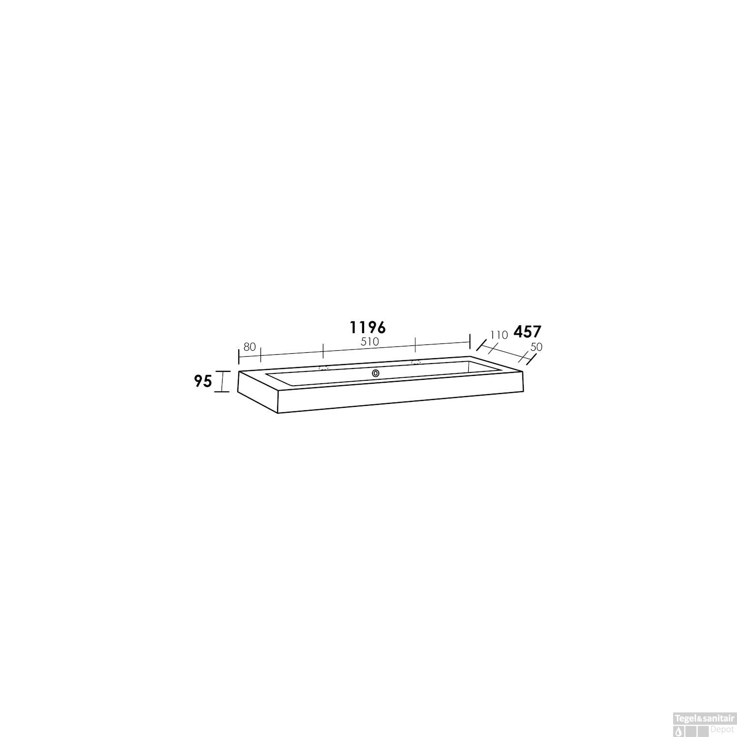 Specificaties Wastafelblad Exclusive Line 120-1 Florence ‘Trog’ 2 kraangaten: